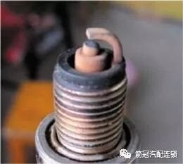 如图所示,这种现象是火花塞故障中最危险的一种,轻则火花塞点火失效,重则破裂的陶瓷造成发动机拉缸,并且更换新产品后未必能彻底解决问题,很有可能汽车再行驶一段时间后再次发生类似故障。